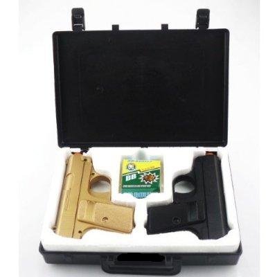 We all know more equals better right? Why get only one airsoft gun when you can get two. Introducing the Double Eagle Twin P328 Spring Pocket Pistols. This amazing package comes with a mind boggling 2 spring pocket pistols. You can give one of the pistols to your friends. Don't have friends? Hold one in both hands then and people will think you are cool. The Twin P328 Spring Pocket Pistols comes with a black pocket pistol and a gold pocket pistol. Their compact size makes them easily fit in your pockets. So what are you waiting for? Get yours today!